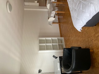 Studio meublé, non fumeur, 32 m2, lumineux, sans balcon. Crépis blanc, parquet, armoires fixes (étagères, penderie), entièrement équipé ameublement moderne, (1 pers. ou couple). Cuisine laboratoire: cuisinière 4 plaques, hotte ventilation, four, petit frigo compartiment freezer, rangements, vaisselle, ustensiles. Salle de bains: baignoire, wc, pharmacie murale, chauffe-linges. Cave. Buanderie:machines lave-linge/sèche-linge, utilisation selon planning. Non compris: électricité, connexion wifi. Assurance RC obligatoire. Dépôt garantie bancaire 2 mois.