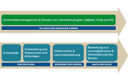 - Im Laufe des gesamten Kurses: Unterrichtsmanagement und Nutzung digitaler Tools und künstlicher Intelligenz zur Förderung des Lernens der Studierenden