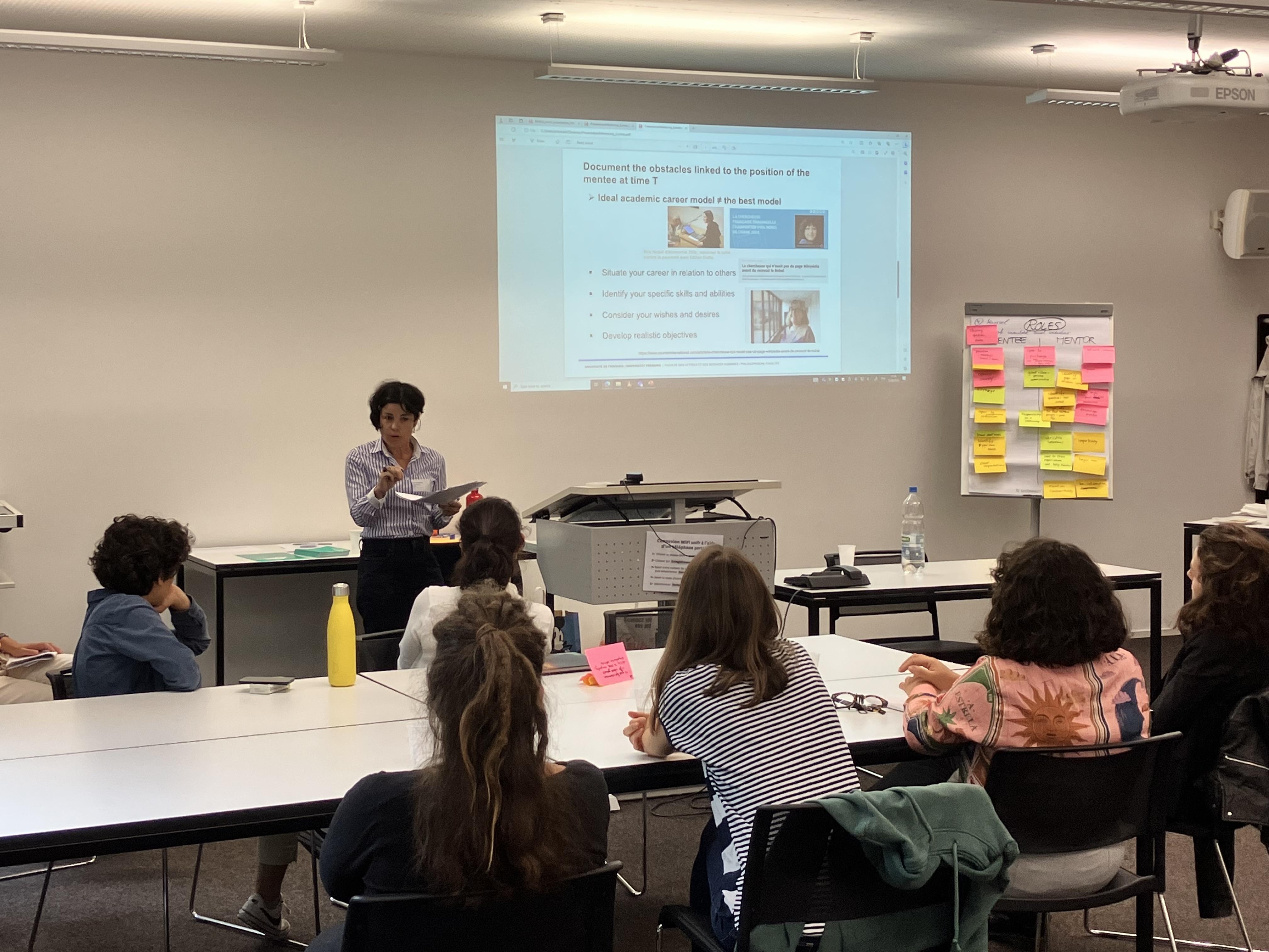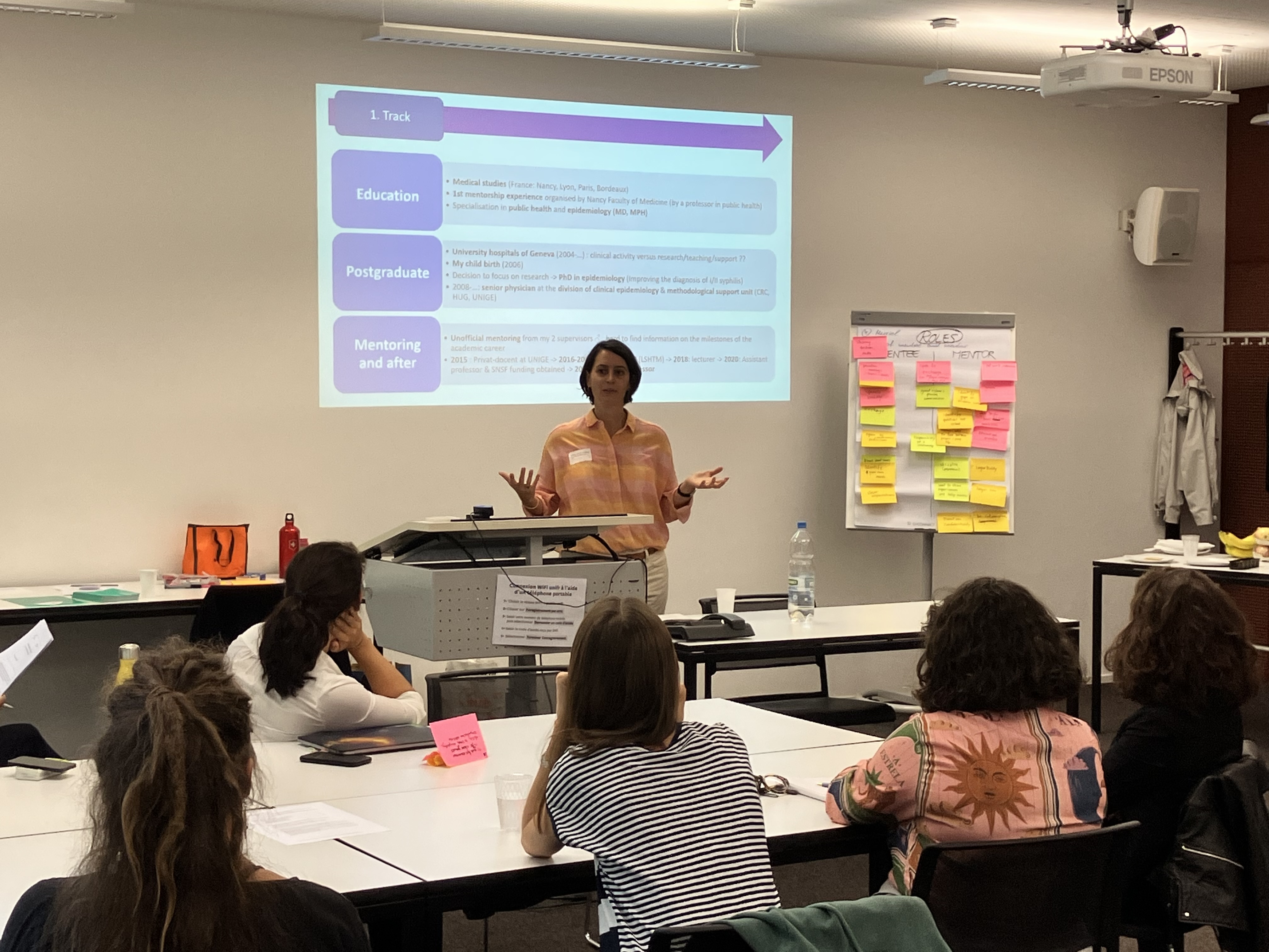 Lors de cette rencontre, les mentees se voyaient pour la première fois, une occasion pour clarifier les rôles des mentees et mentor-e-s, de parler des objectifs pour une relation de mentorat et de clarifier les attentes.Nous invitons à chaque rencontre de lancement des anciennes mentees et mentor-e-s. Cette fois, la professeure Angèle Gayet-Ageron (HUG), mentee de la 8ème édition et la professeure Muriel Surdez, mentore des édition 7, 9, et 10 nous ont parlé de leurs expériences, partagé des recommandations et répondu aux questions des participantes.