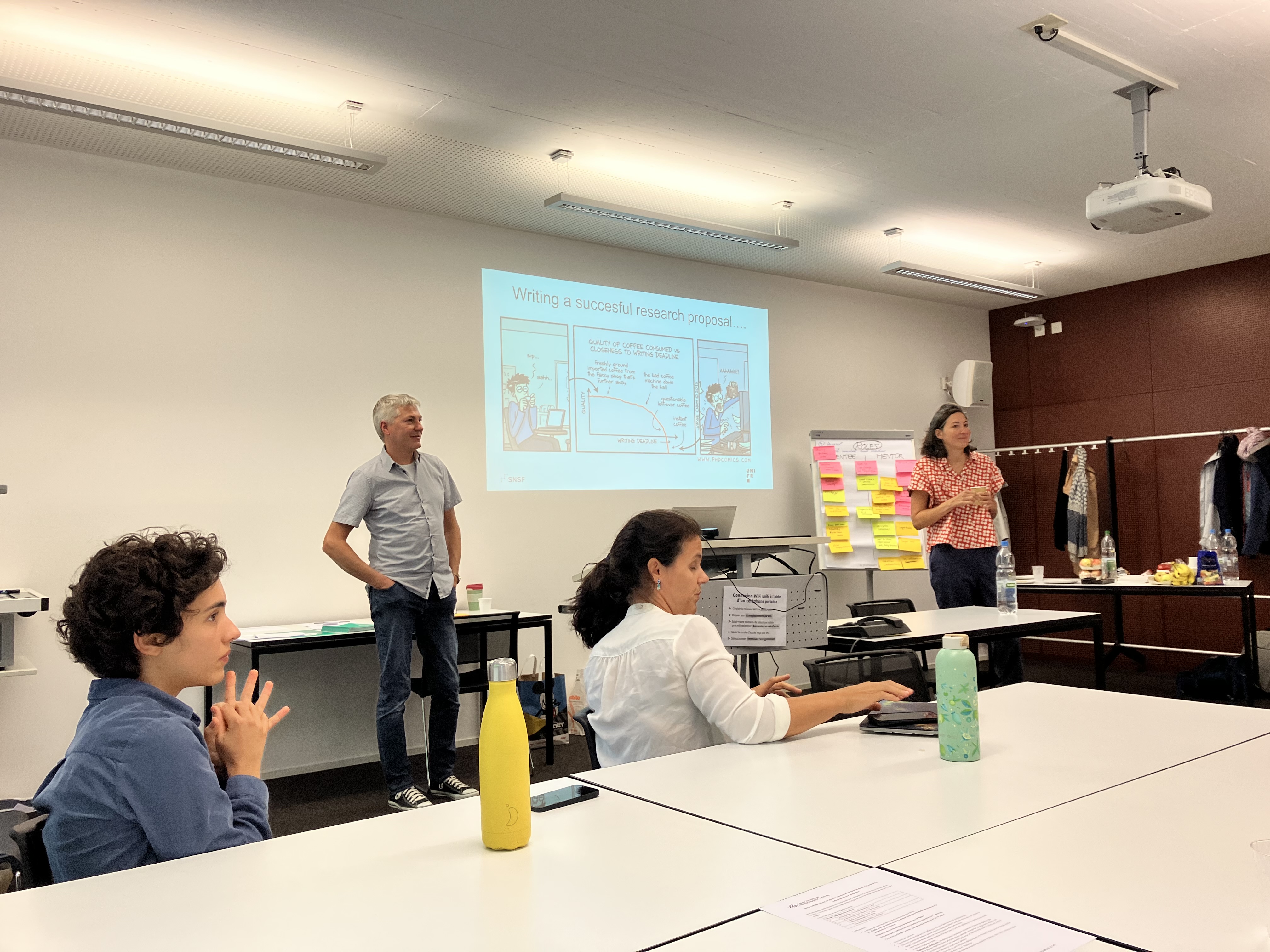 Lors de cette rencontre, nous avons également invité Jasmine Lorenzini, déléguée de l'égalité au FNS et Matthias Held du Service promotion recherche de l'université de Fribourg pour donner un atelier les instruments de financement de recherche et sur les mesures d'égalité au FNS.