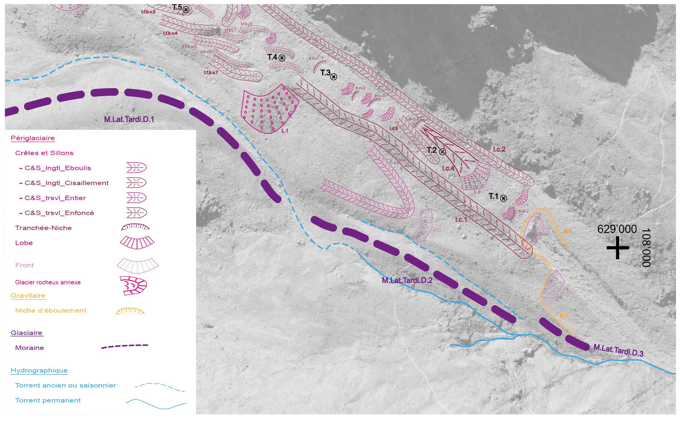 Extract from a geomorphological map of the Dirru rock glacier (V. Gruber, 2010) -