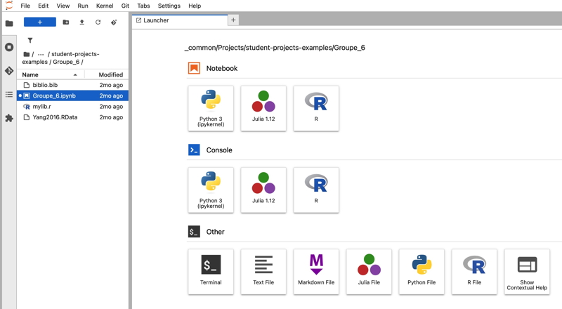 Ein Projekt wird von zwei oder drei Studierenden durchgeführt und muss die Behandlung konkreter Datenanalysefälle mithilfe der R-Software gestatten. Die Studierenden haben auch die Möglichkeit zur Nutzung und Anwendung der Konzepte und Methoden, die sie im Kurs kennengelernt haben.