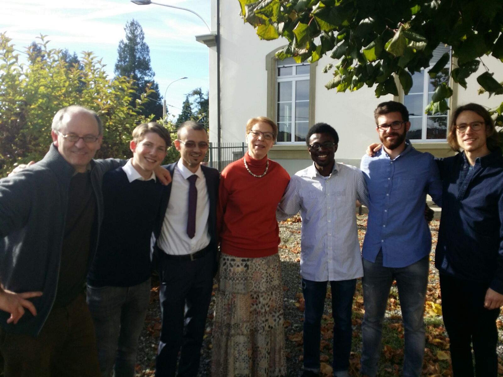 Le comité de préparation et les deux professeurs responsables de l'accompagnement (de gauche à droite) : Prof. Joachim Negel, Micha Weiss, Lazer Preldakaj, Prof. Barbara Hallensleben, Desiré Ngwene, Damian Diethelm, Benjamin Vaytet