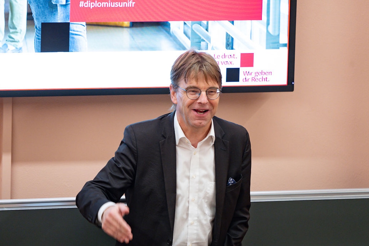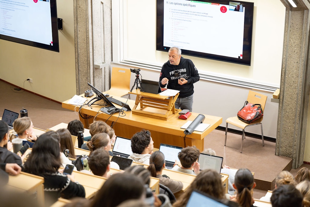 Bilder vom Informationsabend IUR I zum Master-Studium vom 4. Dezember 2025 mit Prof. Bernhard Waldmann (D) und Prof. Jacques Dubey (F). Im Anschluss fand das traditionelle Fondue-Essen in der Mensa Miséricorde statt.