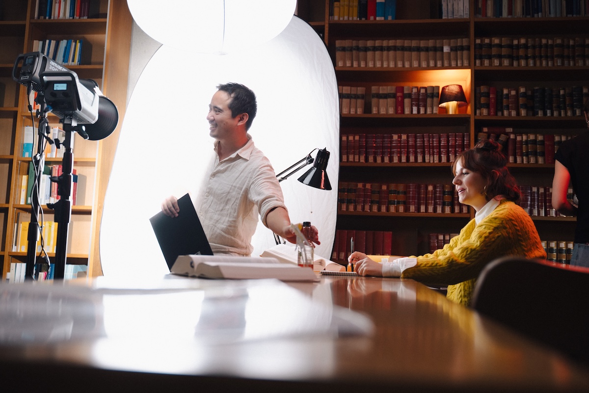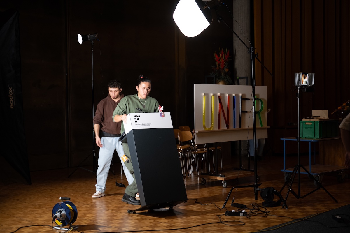 Pendant une journée, la bibliothèque de droit et l'Aula Magna ont été le théâtre d'une production cinématographique. Dans une ambiance de travail marquée par l'« action », le clip de notre campagne publicitaire intitulée « Gib deinen Worten Wirkung » a été produit par une équipe de cinéastes. Voici un aperçu du tournage :