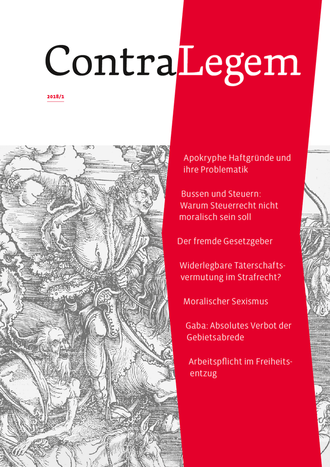 ContraLegem verzichtet deshalb weitestgehend auf Fussnoten und enthält primär kurze Beiträge. Kernthemen sind Recht und Philosophie. Aber darauf ist die Zeitschrift nicht beschränkt. Vielmehr soll sie dem freien und freiheitlichen Meinungsaustausch eine Plattform bieten.
