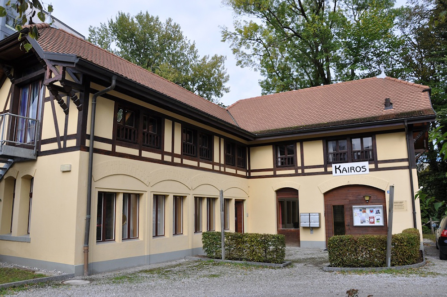 Das Haus Kairos ist der Ort der Begegnungen. Hier finden die kreativen Workshops statt. Im Erdgeschoss gibt es eine grosse Küche. Im Erdgeschoss befindet sich neben der Küche auch eine gemütliche Salon-Ecke, wo man in Ruhe lesen oder reden kann. Im 1. Stock befindet sich ein heimeliger Saal für Meditationen, Seminaren oder kreativen Workshops.
