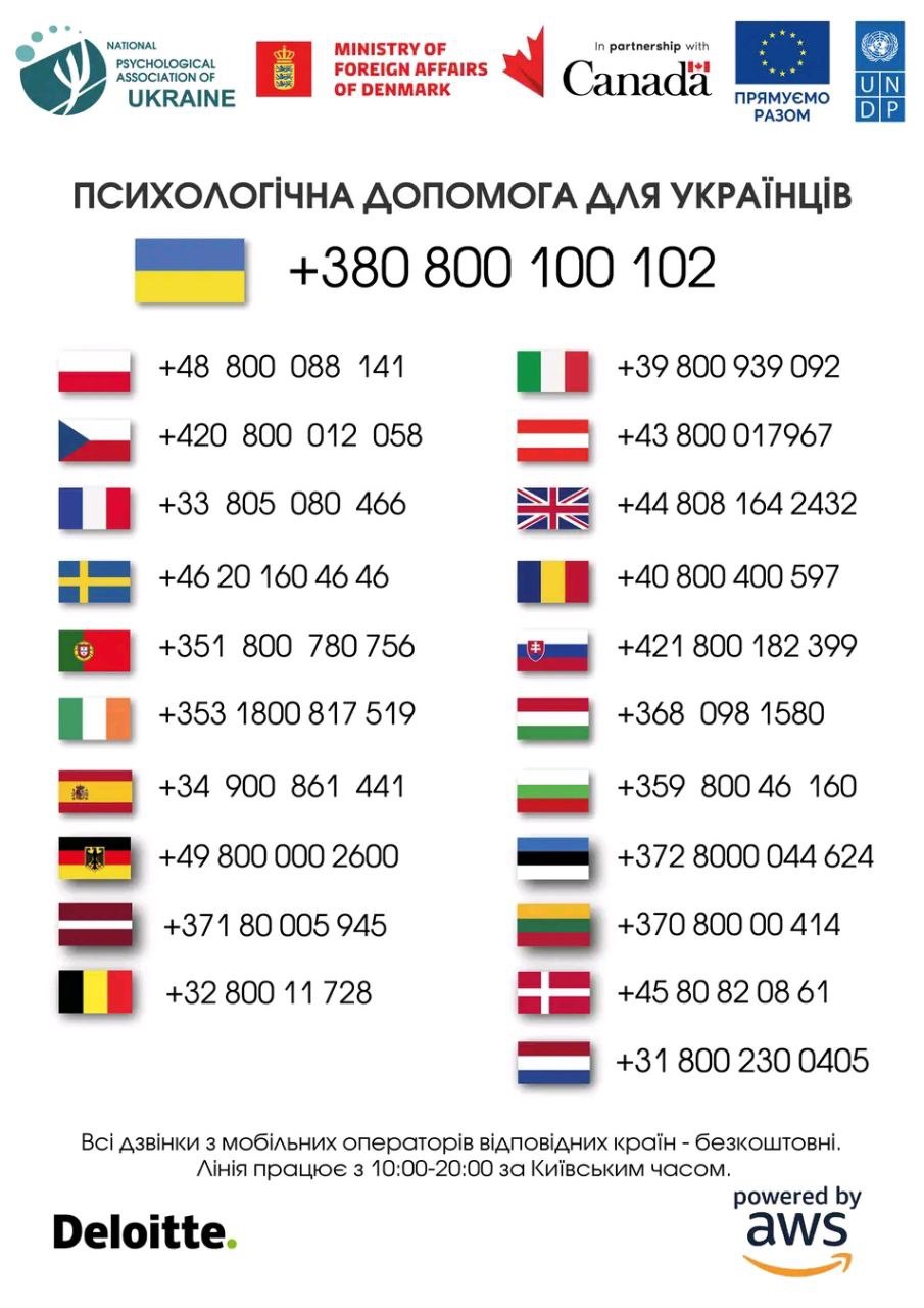Якщо ви почуваєтеся погано або маєте психологічні проблеми, не соромтеся телефонувати за одним із вказаних нижче телефонів.
