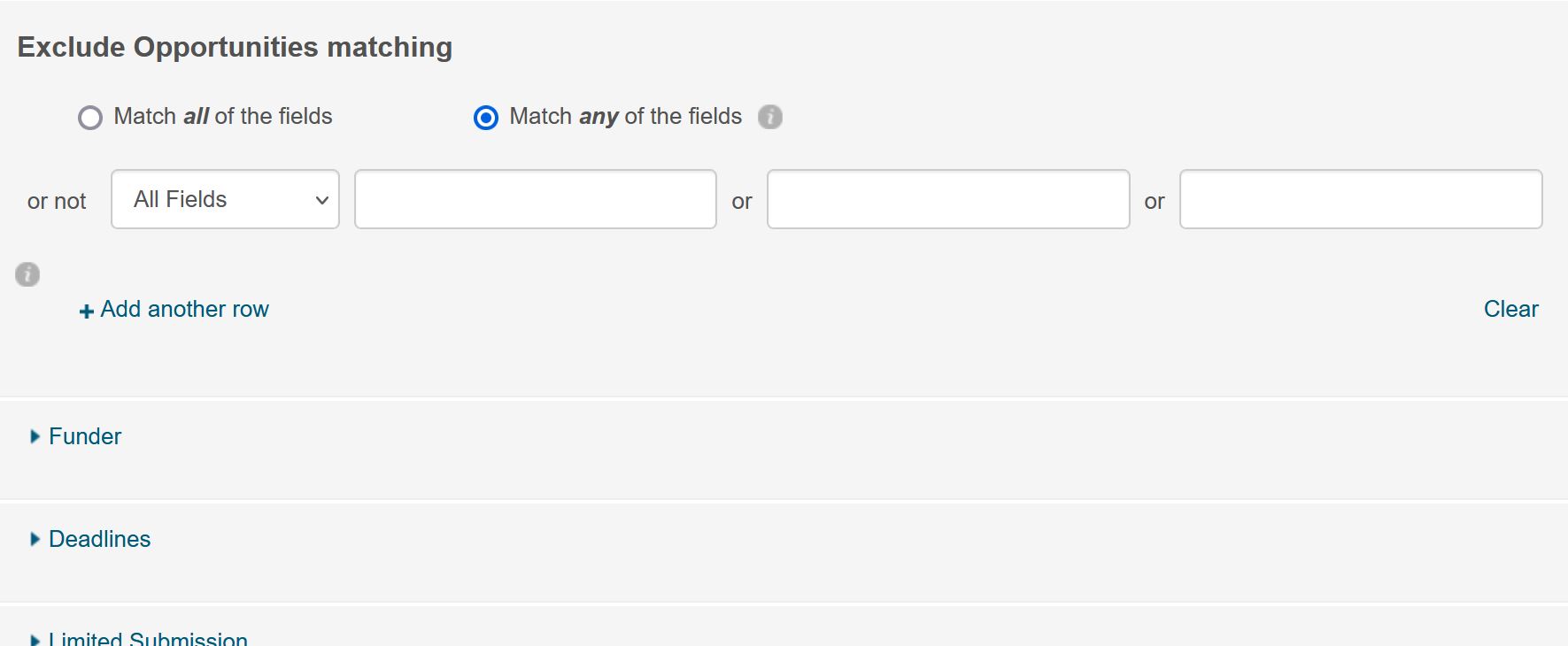 Cette fonction est utile pour éliminer les opportunités qui pourraient contenir des exigences que vous ne possédez pas, ou qui correspondent à des domaines de recherche qui ne vous intéressent pas.
