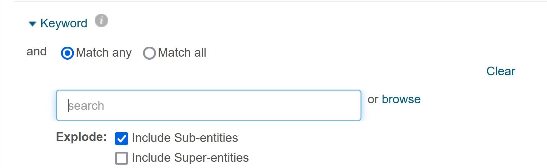 Le filtrage par mots-clefs est un moyen efficace afin d'affiner les résultats. Vous pouvez inclure plus d'un mot-clef. Lorsque vous incluez plusieurs mots-clefs, ils sont automatiquement combinés avec un "ou", ce qui signifie que les résultats que vous obtiendrez contiendront au moins l'un des mots-clefs sélectionnés.