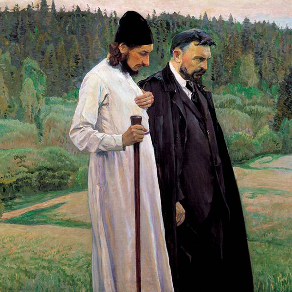 "Philosophen" (Pavel Florenskij und Sergej Bulgakov) von Michail Nesterov (1917); Tretjakovskaja-Galerie, Moskau