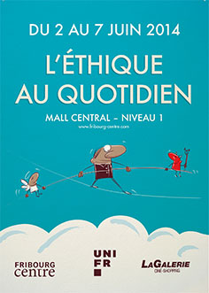 Dans le cadre des activités du Master spécialisé Éthique, responsabilité et développement, nous organisons du 2 au 7 juin 2014 la semaine de l’éthique. Inscrite dans le cadre des obligations de l’Université à l’égard de la cité, cette semaine a pour objectif de permettre un cheminement éthique sur des thématiques diverses comme la mode, la consommation alimentaire, l’empreinte écologique, la science, et l’Autre différent. Notre principe lors de cette semaine ne sera pas d’apporter des réponses définitives à des questions fortement complexes, mais plus simplement, et dans le droit chemin de l’éthique, de dévoiler des enjeux, déconstruire des certitudes et inviter nos concitoyens et concitoyennes à réfléchir ensemble sur les actes quotidiens. | ||