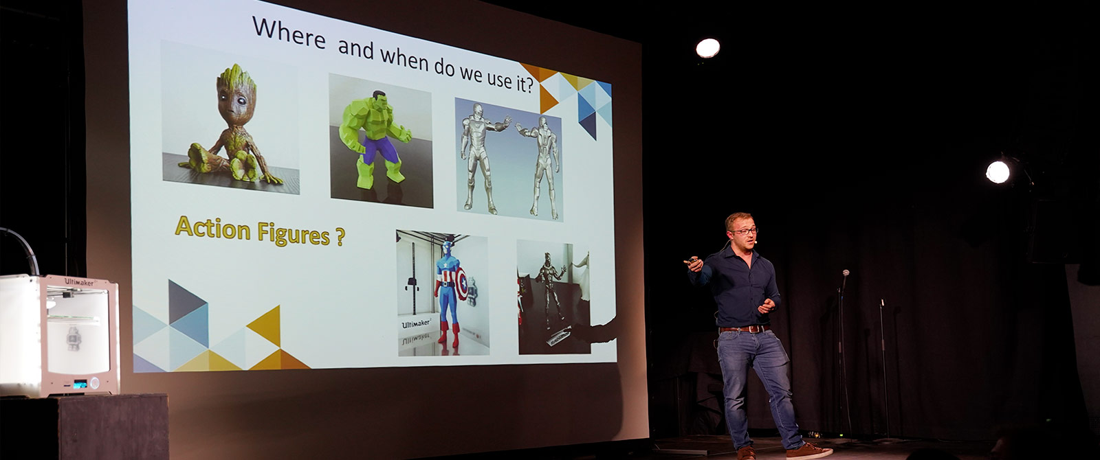 Eine Bühne, drei Minuten und ein Projektor zur Vorstellung einer Doktorarbeit.
