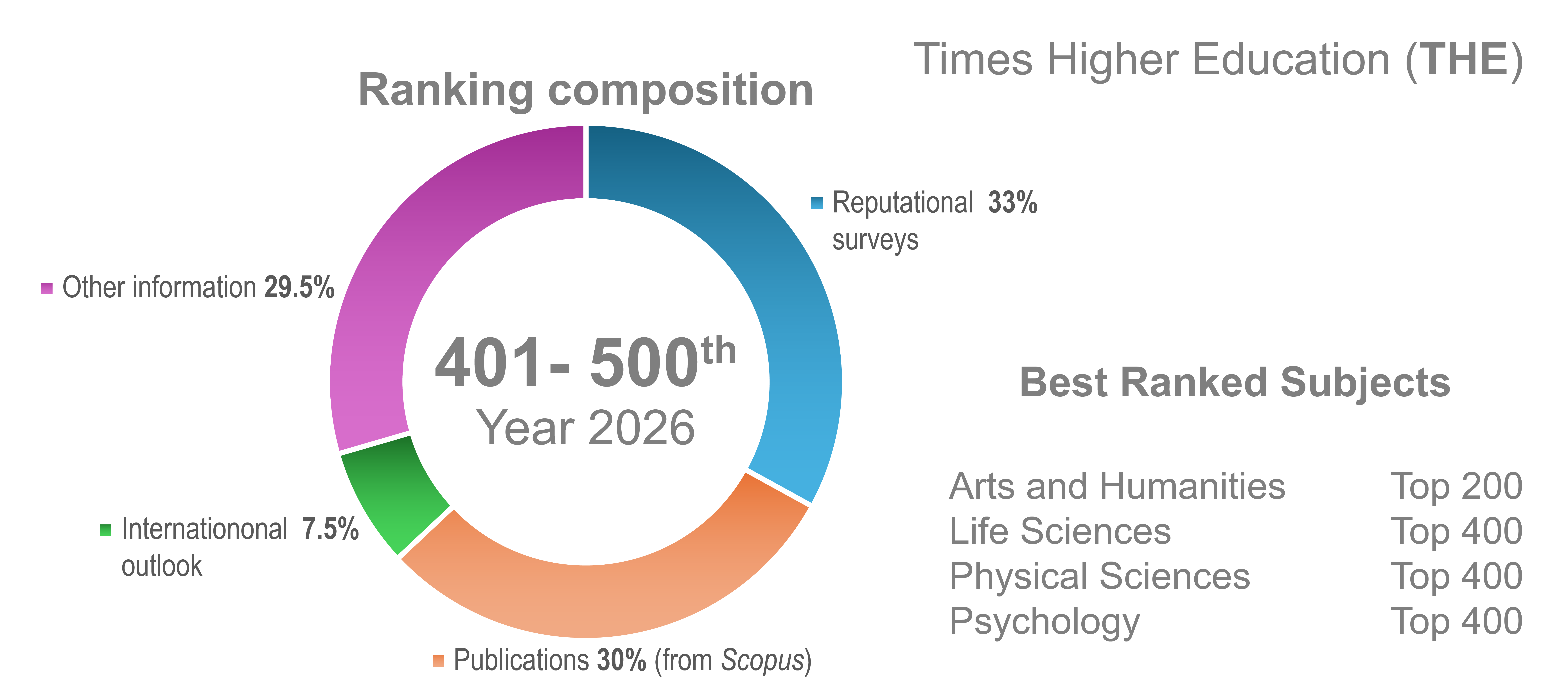 - Classé parmi les 300 meilleurs au monde dans les matières de sciences pharmaceutiques, biologie, sciences biologiques humaines et de psychologie.