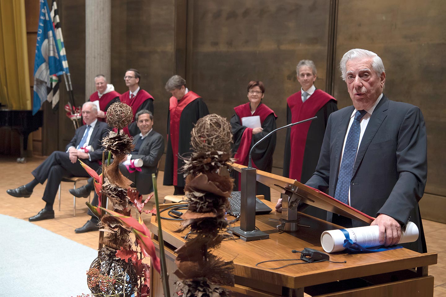 Lors du Dies academicus 2016, Mario Vargas Llosa a improvisé un discours dans la langue de Molière, afin de remercier l’Université de Fribourg au nom de tous les docteurs honoris causa. En plus du Prix Nobel de littérature, ont été nommés cette année le Dr Timothy Radcliffe OP, ancien maître de l’Ordre des Prêcheurs; le Secrétaire d’Etat négociateur en chef pour les négociations avec l’UE Jacques de Watteville; le journaliste et pionnier du monde des médias suisses, Roger Schawinski et le Professeur Albert W. Bally, géologue, expert reconnu mondialement pour ses interprétations des études sismiques.