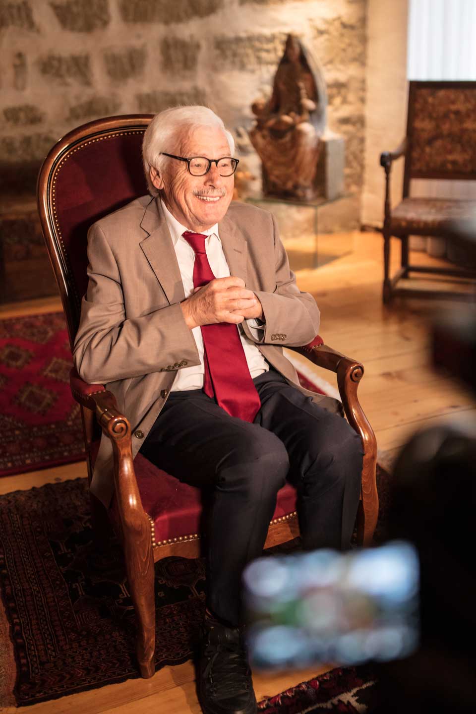 Quand il évoque le passé, Martin Nicoulin est intarissable. Il s’enthousiasme, s’emporte et se permet d’innombrables digressions. Il se sait doué d’un charisme certain. Cela remonte à loin, au début de ses études à l’Université de Fribourg, quand il se risqua à un exposé d’une heure, sans papiers: «Je vois Roland Ruffieux et les étudiants totalement impressionnés!», s’exclame-t-il. «Même sagement assis à une table de restaurant, dès qu’il se met à parler, il focalise l’attention de tous les clients», confie l’un de ses contemporains jurassiens. «La moindre anecdote devient une épopée», renchérit son épouse.
